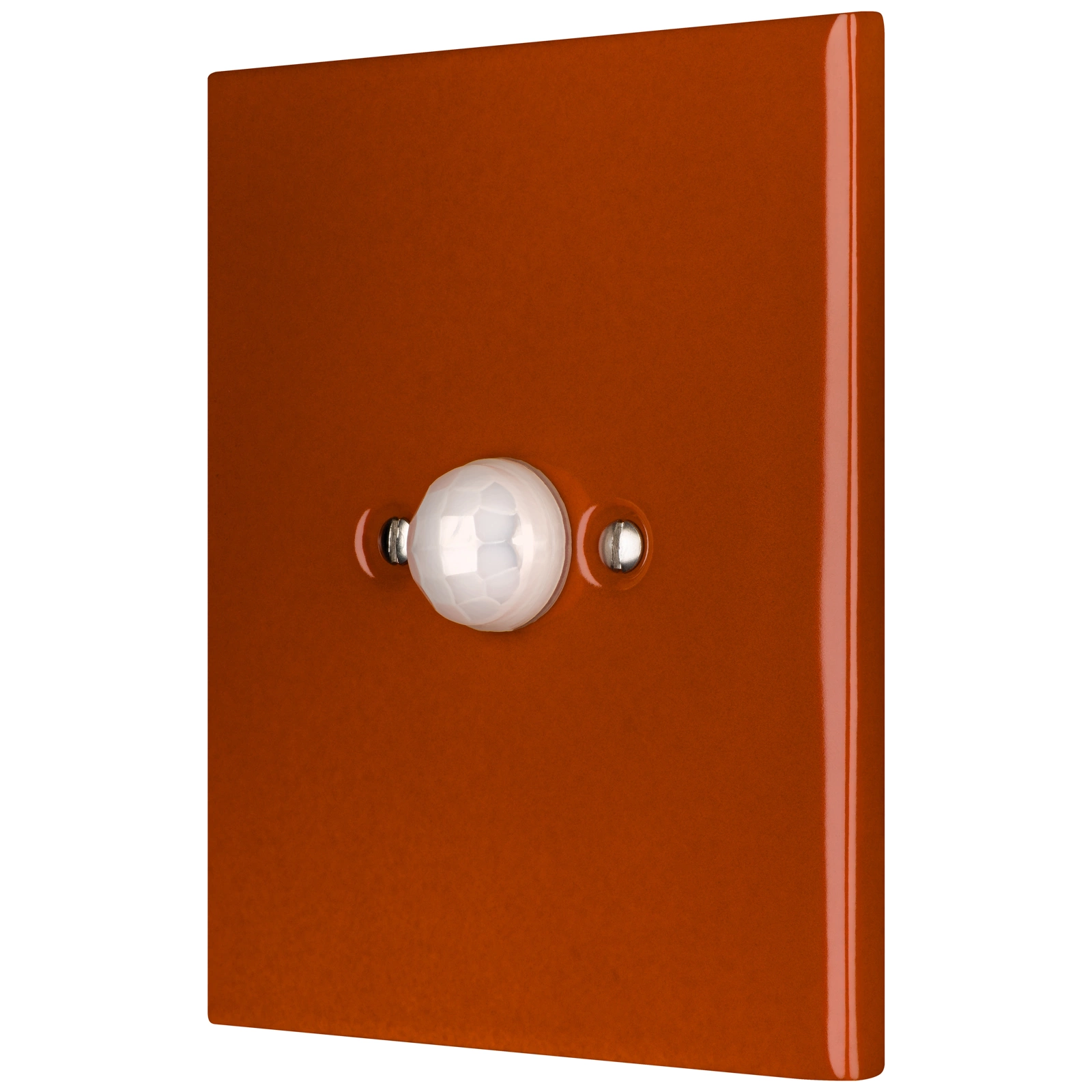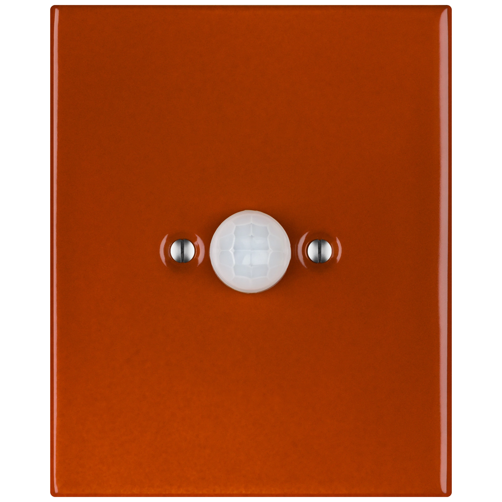 Posliininen liiketunnistin, jossa lasitettu pinta. Värisuunnittelu - Meksikon ruskea - punainen. Kestää hankausta ja pölyä erittäin hyvin. CE-vaatimustenmukaisuustodistus. Koristekansi. 50 vuoden takuu!