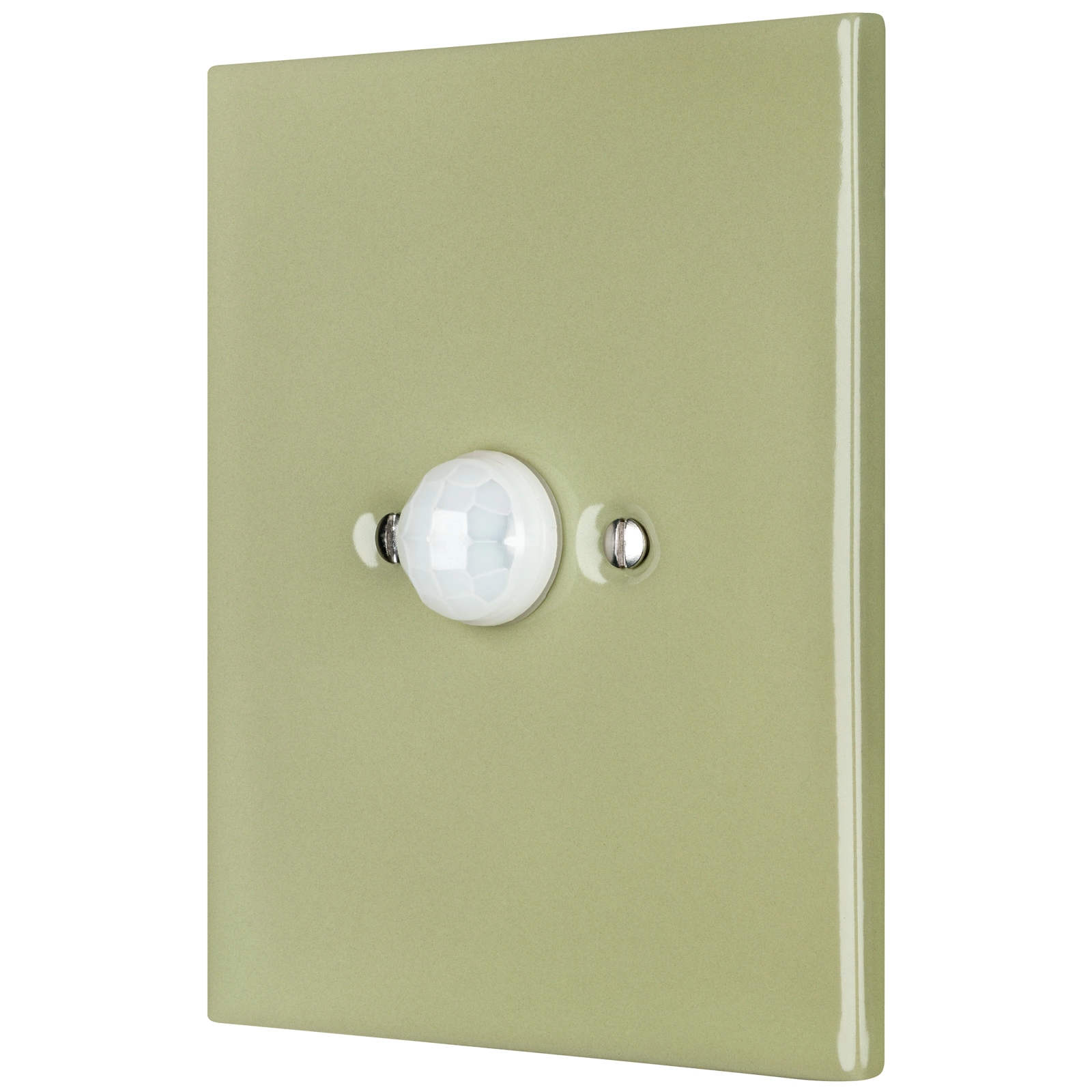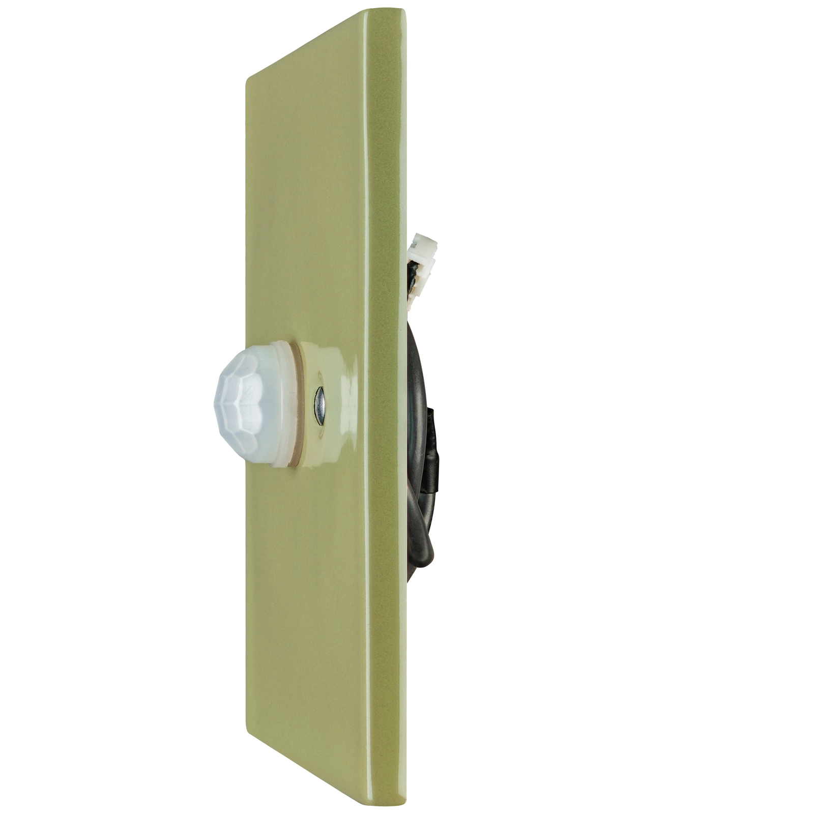 Posliininen liiketunnistin, jossa lasitettu pinta. Kestää hankausta ja pölyä erittäin hyvin. CE-vaatimustenmukaisuustodistus. Koristekansi. 50 vuoden takuu!